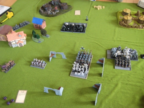 初期配置のルールで両翼はコープスカートとゾンビに。大外からせっせと進軍。